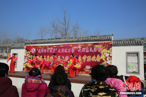 “以前过年,村子里到处都是酒局、牌场,现在我们有广场舞队、腰鼓队,有篮球场还有阅览室,这些活动既健康又热闹,比喝酒打牌好多了。”提到自己身边的变化,今年54岁的郭仕兰说,如今她们村的文化生活比城里人还丰富。 郭仕兰的家乡位于安徽省最北端的砀山县官庄坝镇吴集村,种植砀山酥梨、草莓和葡萄是村民的主要收入来源。近年来,依靠水果经济脱贫致富的吴集村民,不仅生活水平大幅提高,村里的文化活动也日益丰富多彩起来。 这场联欢会从节目编排到演员化妆,全部由村里的邻里乡亲自己完成。趁着村民们集中起来进行春节联欢,这一天,县图书馆的流动图书大巴也开到了村头,为村民们送图书、送春联,小村庄呈现出一番过大年的热闹景象。